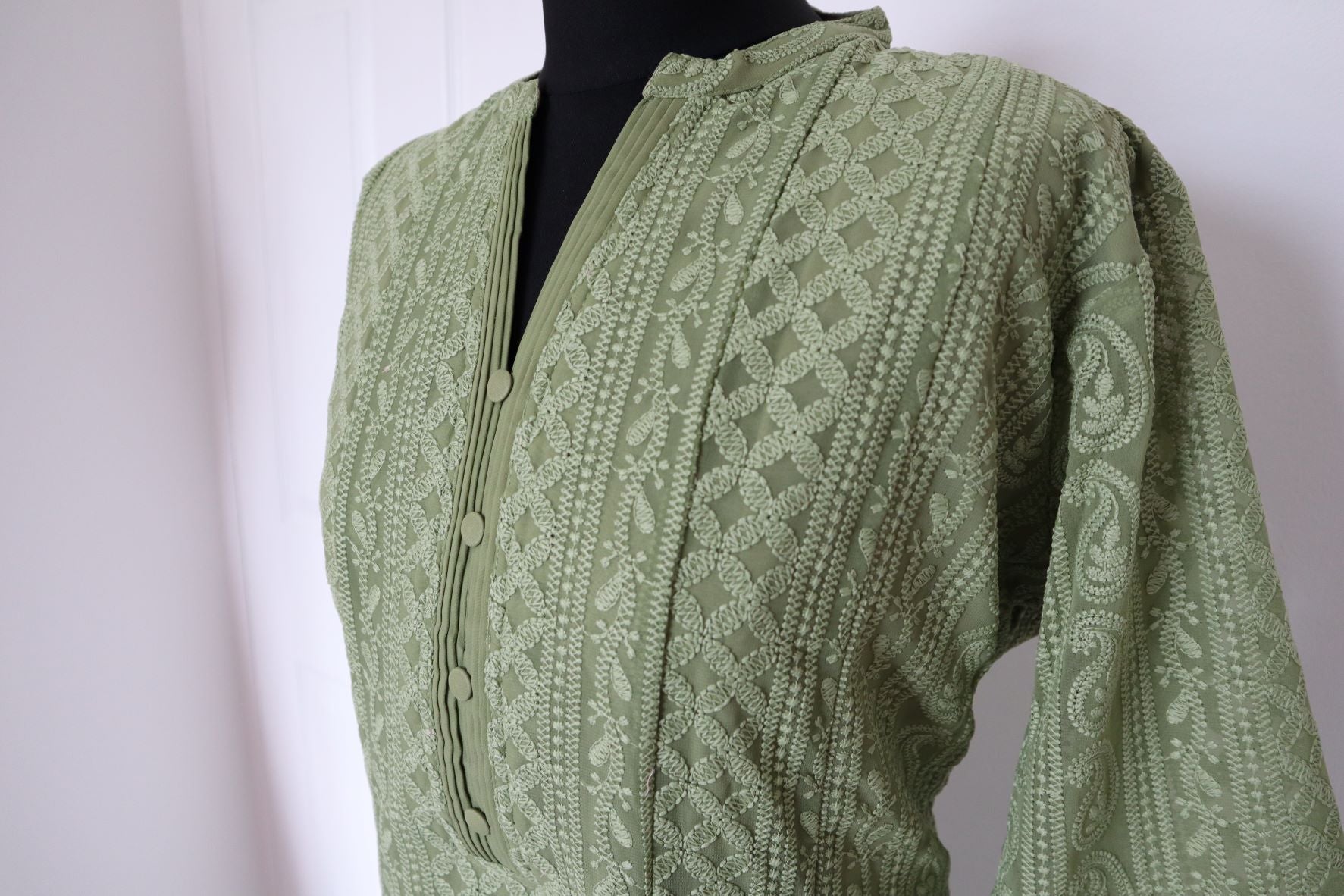 Please take extra care when selecting your size as this is a made to order item which cannot be exchanged or refunded if the size is incorrect. Bust should be measured at the fullest part, in inches, allowing some room for movement within the garment.