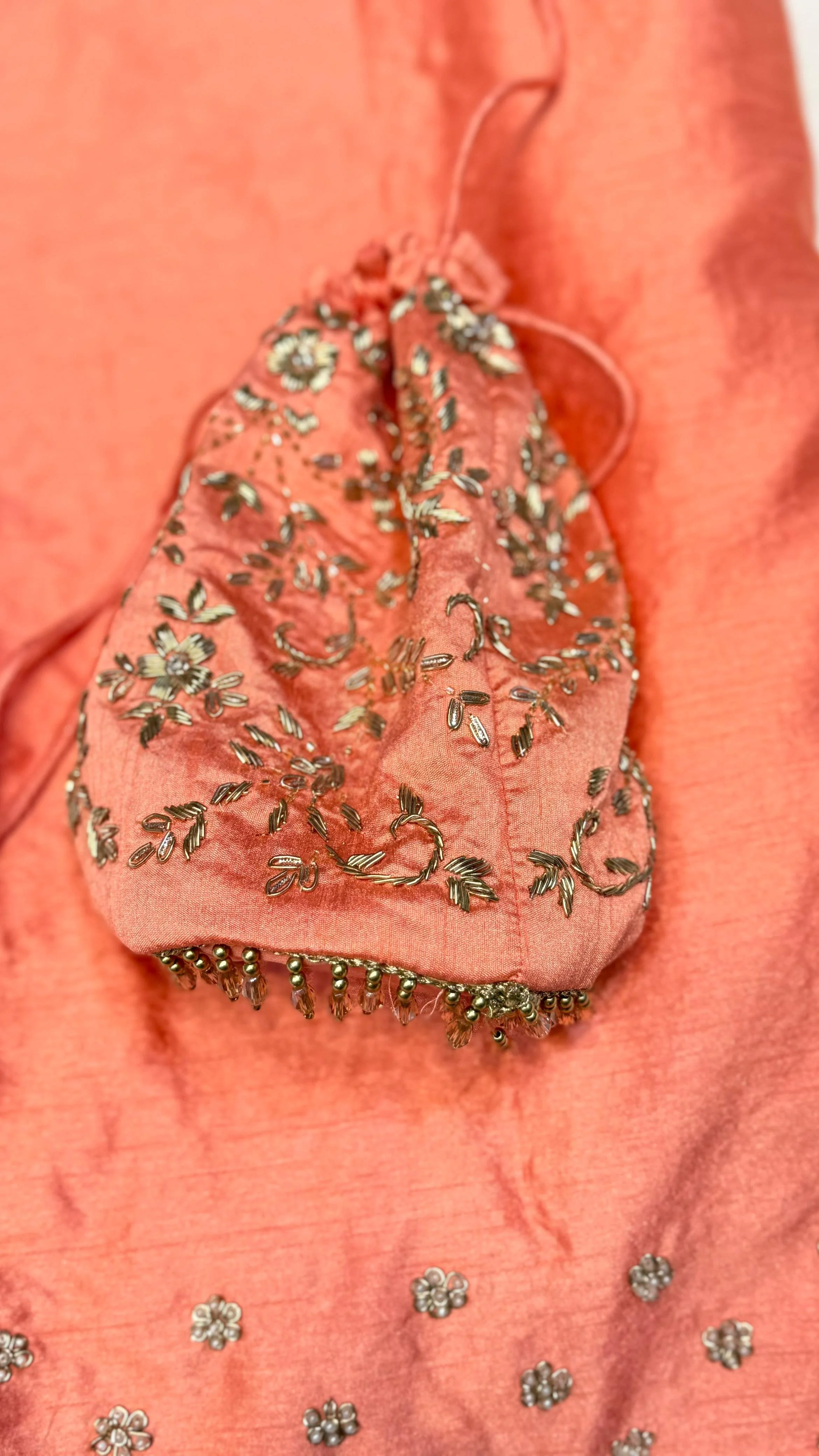 Her dupatta was finished with classic vintage kiran fringing along the edges in gold - a traditional detail that felt entirely at home within the overall aesthetic and added a quiet, beautiful formality to the look.