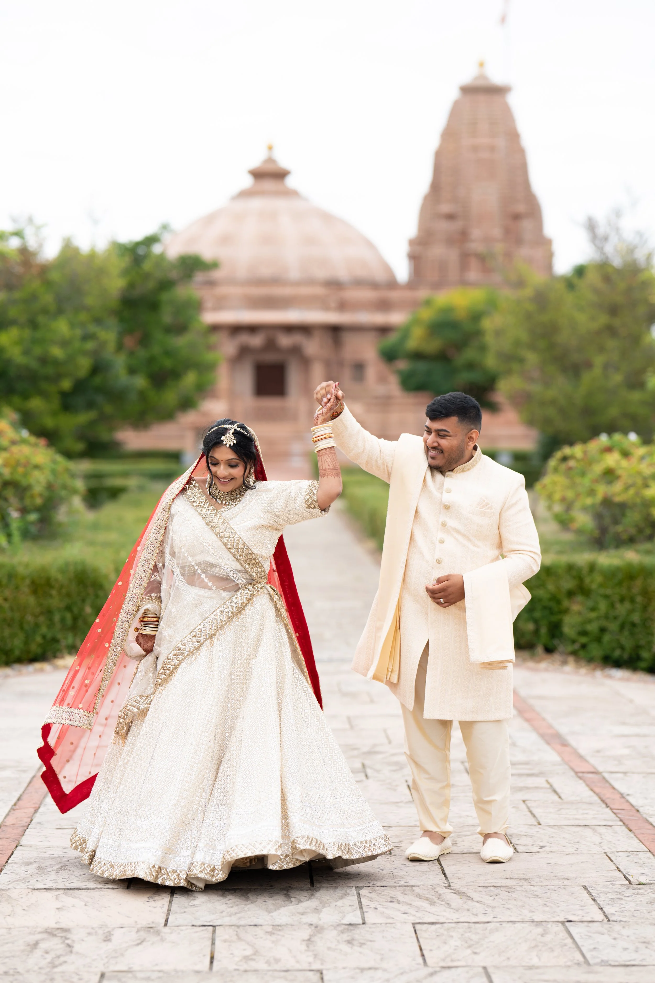 Karishma & Hemal | A Bespoke Bridal Lehenga & Chikankari Sherwani for a Hindu Wedding Ceremony | Sherni London