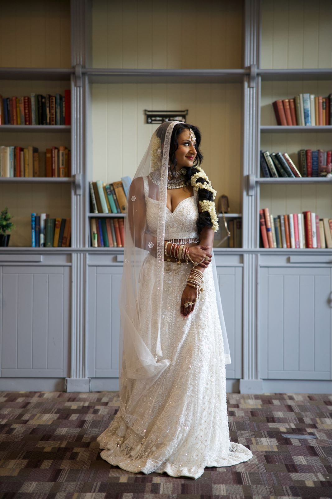 For her evening reception at a stunning historic UK venue, Sheela wanted a complete transformation. Having trusted us with her bridal lehenga, she returned to us for a second creation, and we were honoured to take it on.